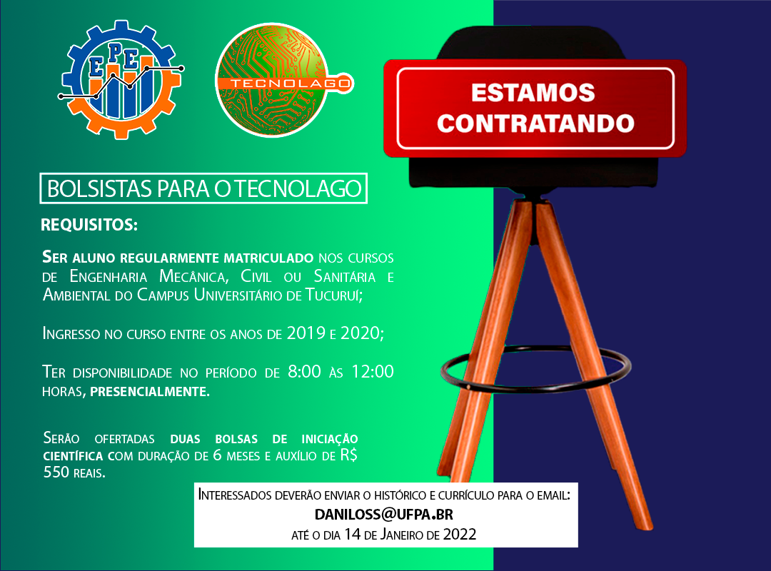 Abertura de vagas para bolsistas de iniciação científica.